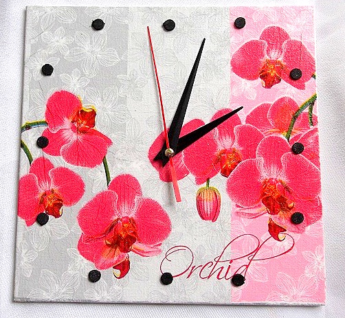 ceas de perete realizat cu tehnica servetelului si lacuita cu lac ecologic