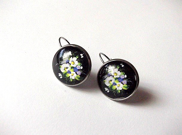 cercei cu sticla cu motiv floral