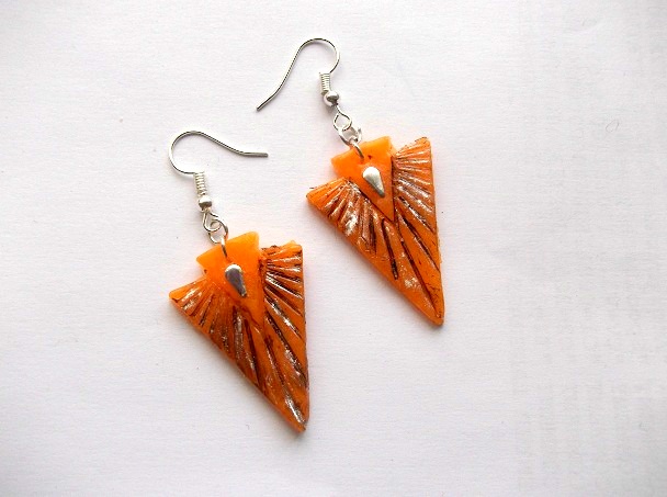 cercei fimo rosii pictati cu alb perleat si lacuti cu lac ecologc