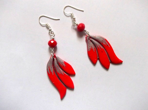 cercei fimo rosu , argintiu si lacuti cu lac ecologc