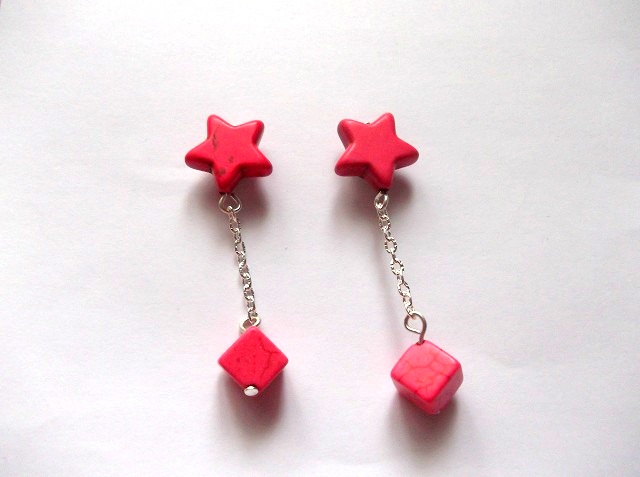 cercei howlite rosu  ( pietre semipretioase )
