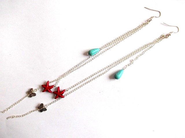 cercei howlite si turcoaz ( pietre semipretioase ) si lant
