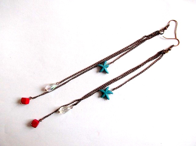 cercei howlite si turcoaz ( pietre semipretioase ) si lant cupru