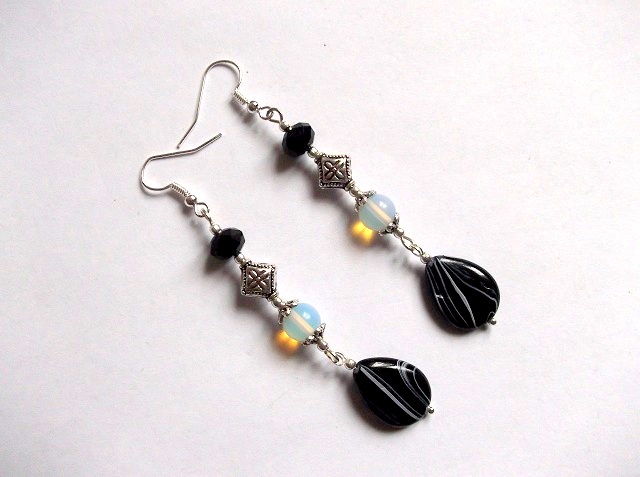 cercei piatra lunii (pietre semipretioase ) si sidef lacrimi si cristale
