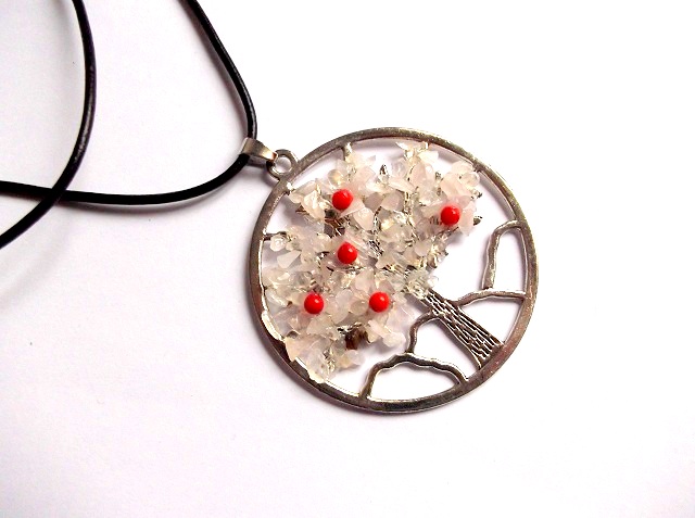 colier arborele vietii cu cuart roz ( pietre semipretioase ) si coral