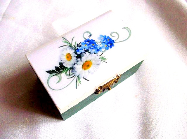 Cutie din lemn decorata cu margarete si flori de nu ma uita 38264
