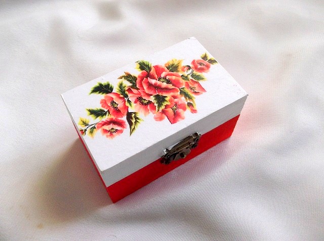Cutie din lemn decorata cu tehnica decuaje ,pictata manual si lacuita cu lac ecologic