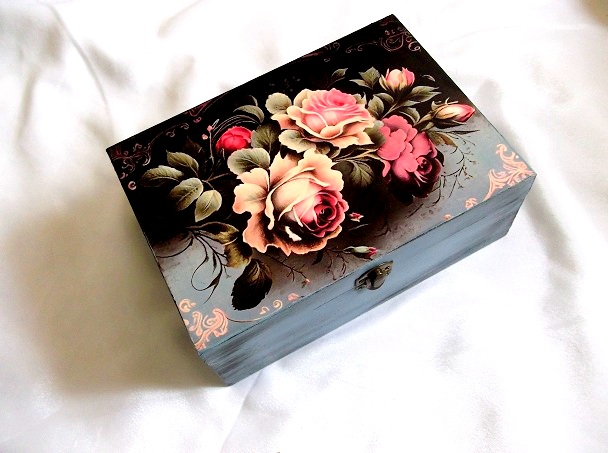 cutie lemn decorata manual cu tehnica decupaje si lacuit cu lac ecologic
