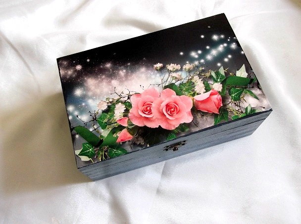 cutie lemn decorata manual cu tehnica decupaje si lacuit cu lac ecologic