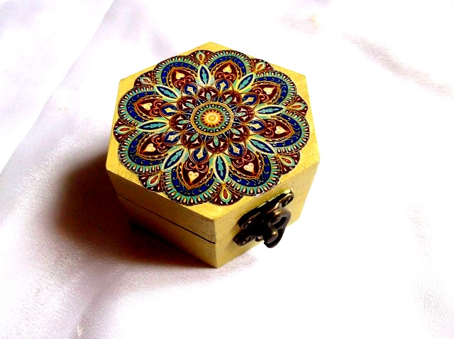 Cutie lemn hexagonala decorata cu mandala, 35811