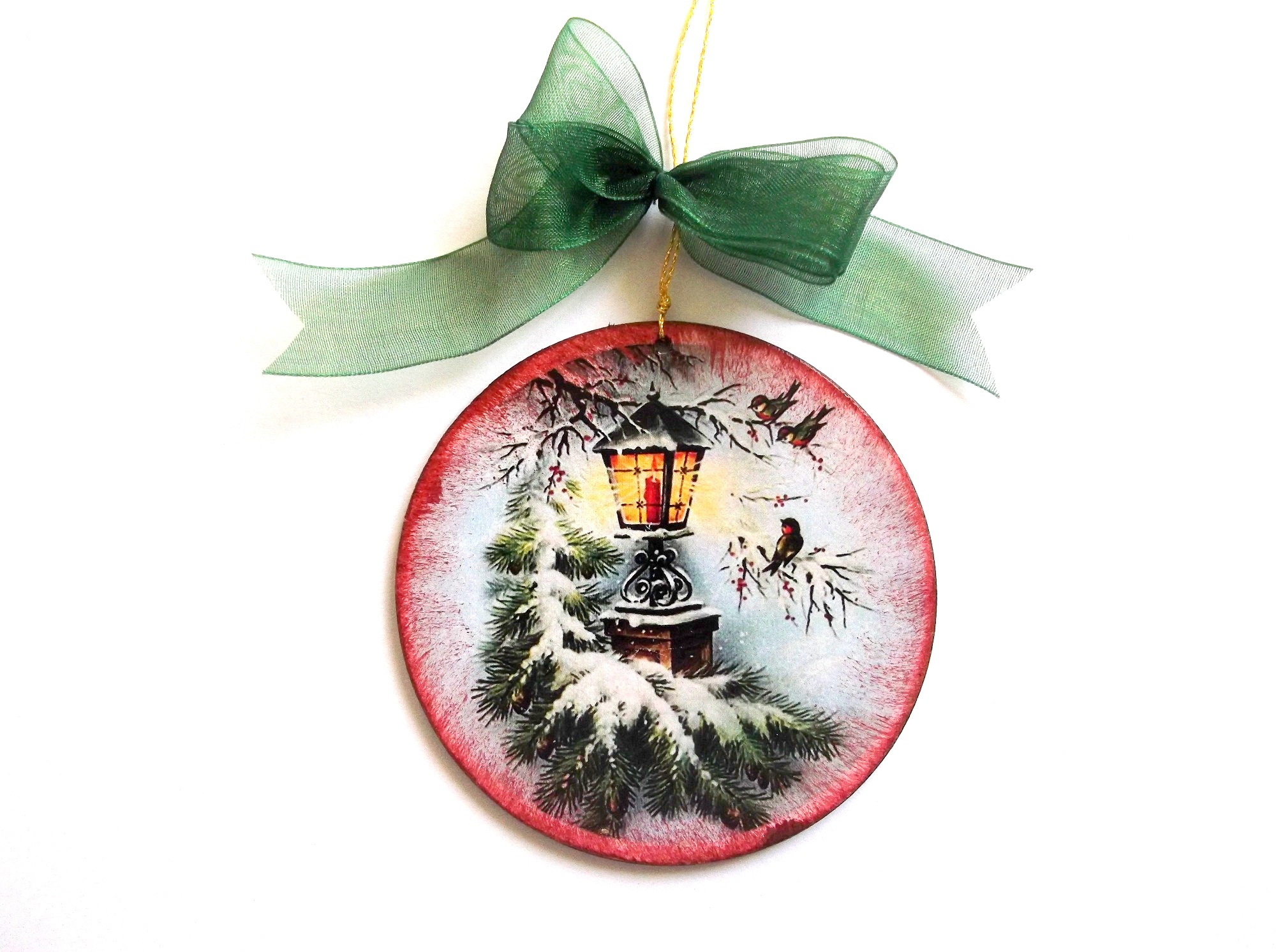 Glob pe lemn ,decorat manual cu tehnia decupaje si lacuit cu lac ecologic