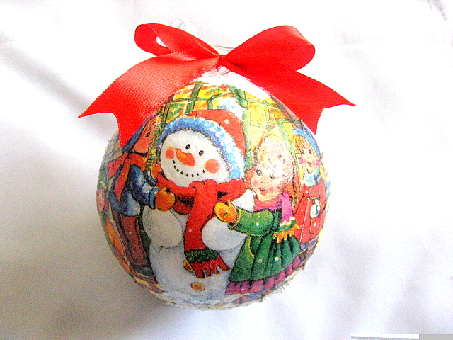 glob pt craciun realizat manual pe bila de polistiren cu tehnica servetelului ,pictat cu pasta structura si acrilice ,lacuit cu lac ecologic