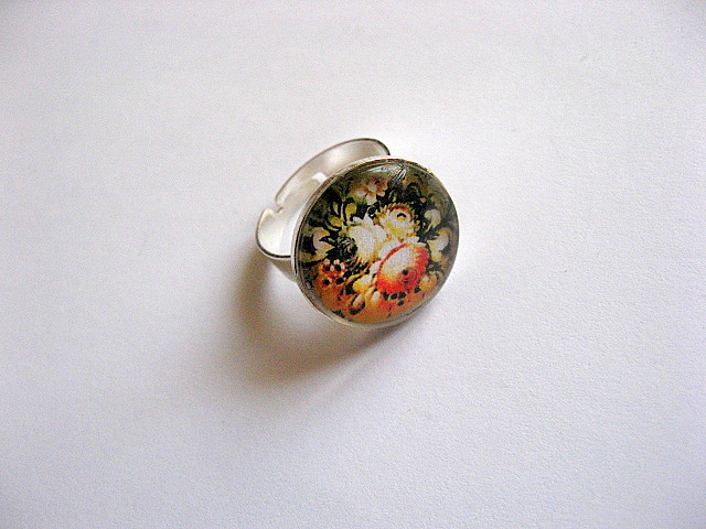 Inel sticla cu motiv floral