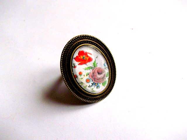 inel sticla de bronz cu flori