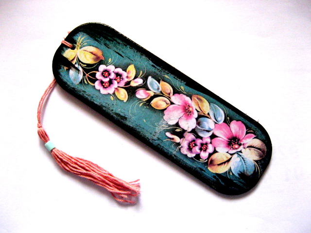 semn de carte decorat pe lemn si lacuit cu lac ecologic