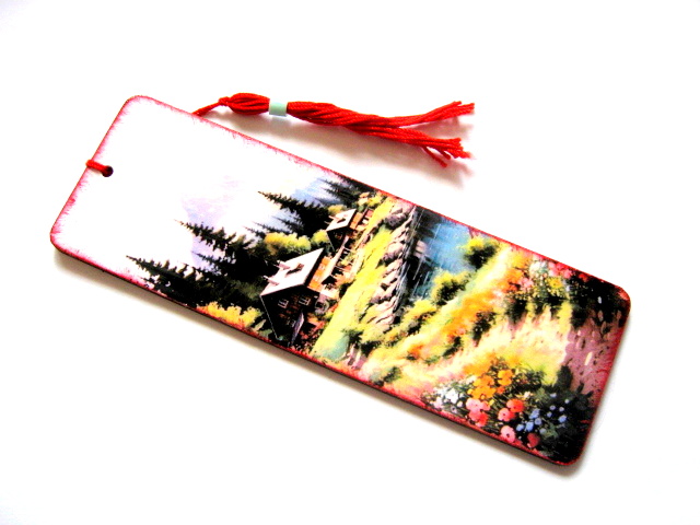semn de carte decorat pe lemn si lacuit cu lac ecologic