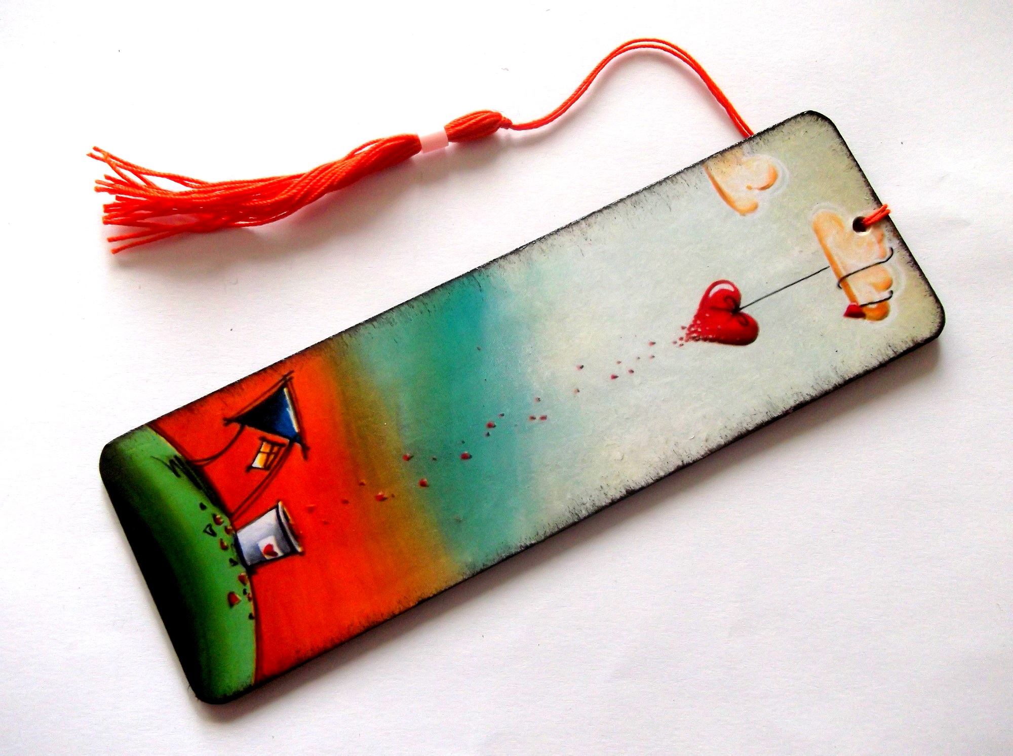 semn de carte decorat pe lemn si lacuit cu lac ecologic