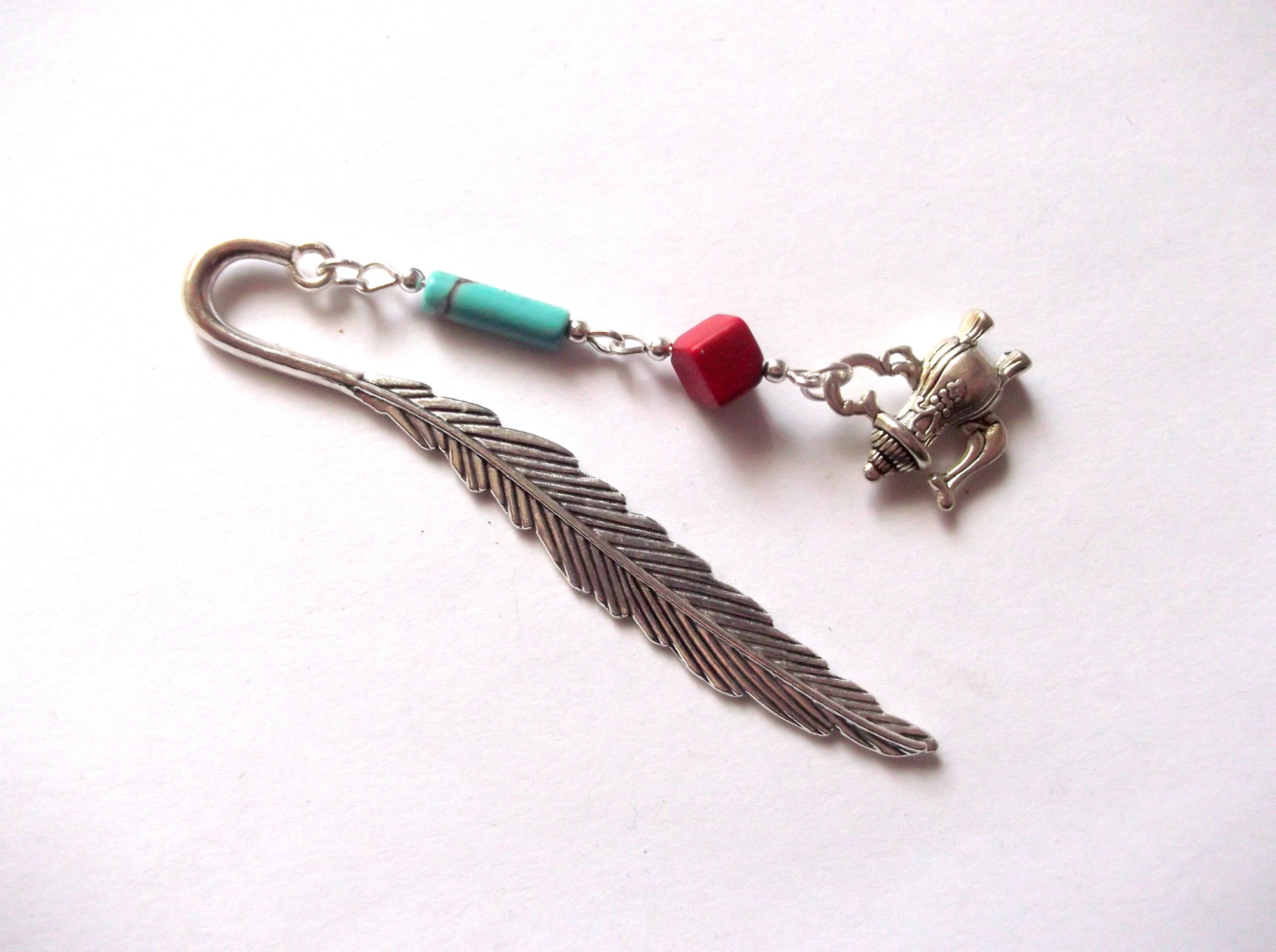 semn de carte cu turcoaz si howlite rosu ( pietre semipretioase )