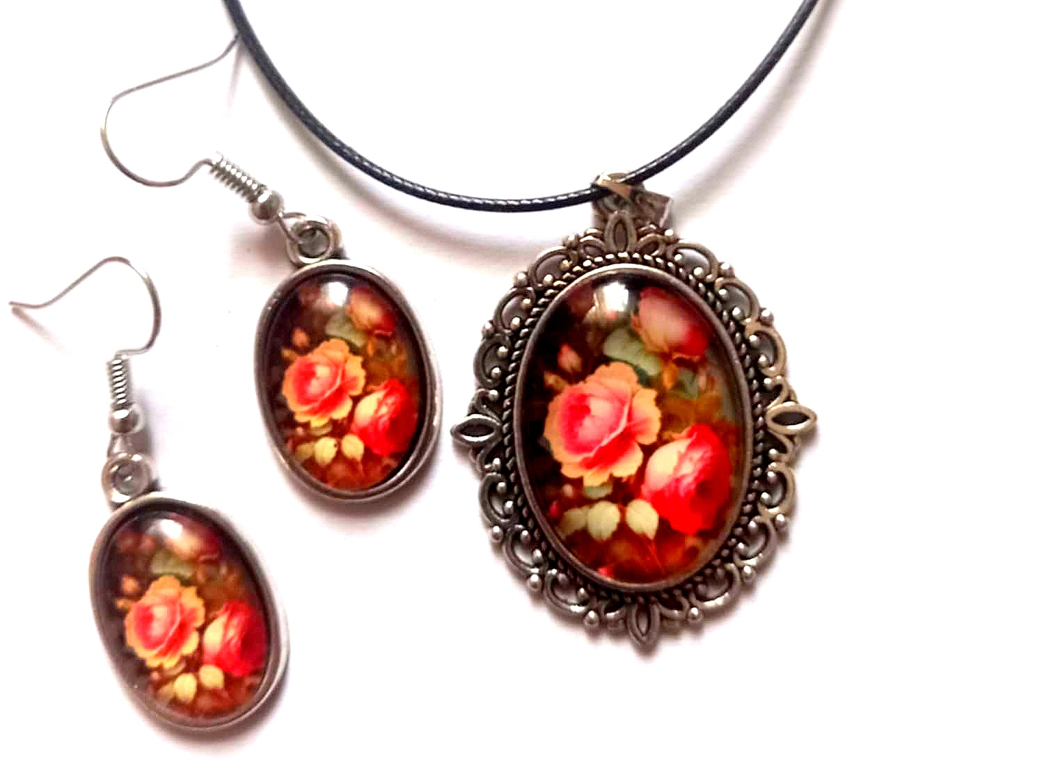 set pandantiv , si cercei cu sticla