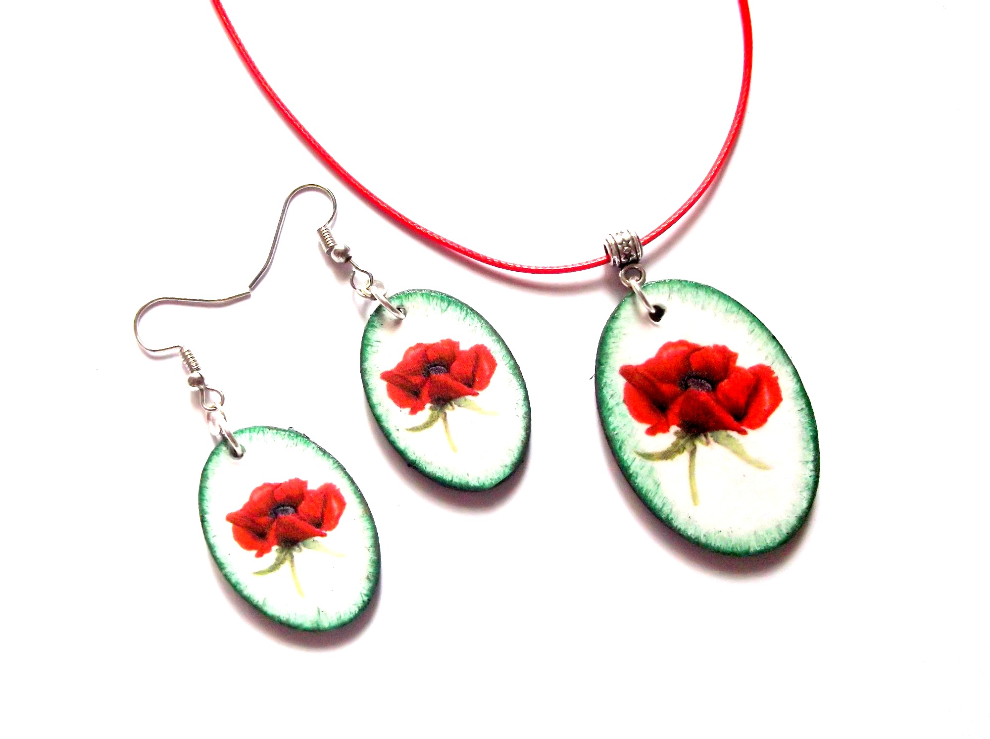 set bijuterii lemn cu maci 43566