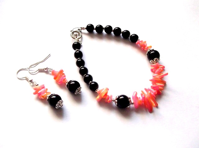 set bratara si cercei cu sidef perlat si margele sticla 37885