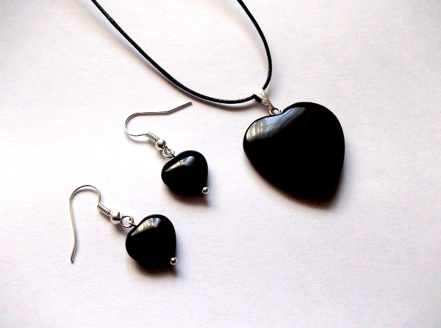 set colier si cercei cu onix cu inima neagra 37890