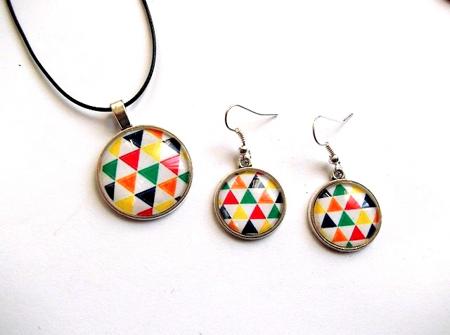 set bijuterii colier si cercei cu sticla multicolor 33633