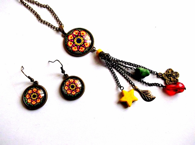 set colier si cercei cu sticla si howlite color ( pietre semipretioase)
