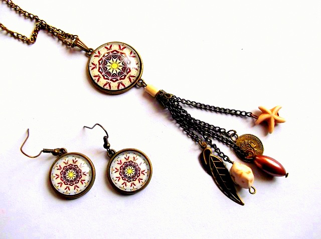 set colier si cercei cu sticla si howlite color 34003