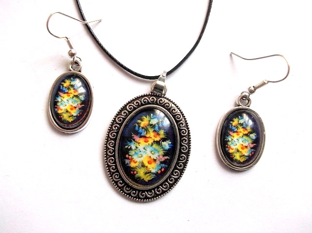 set pandantiv , cercei cu model floral