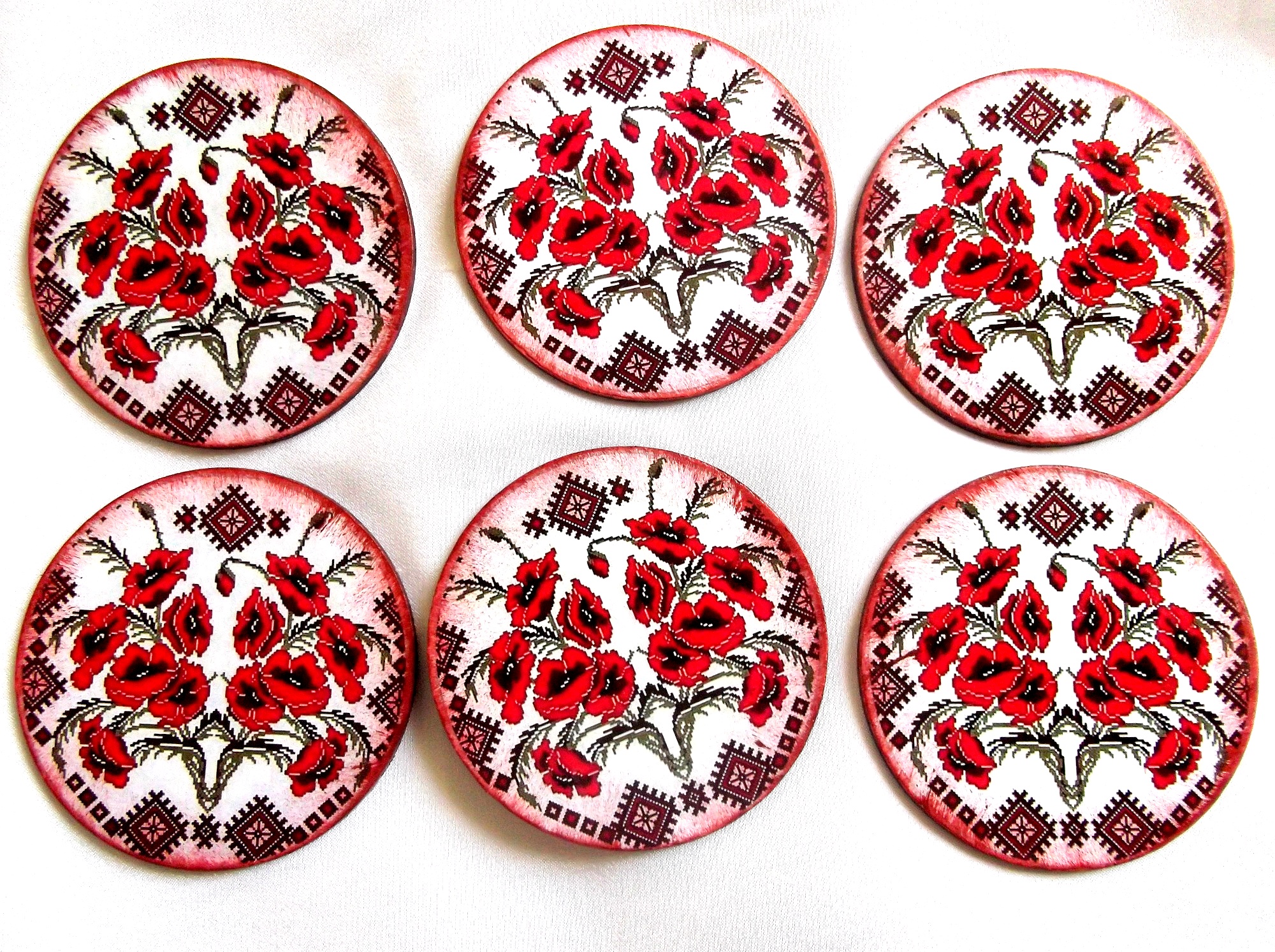 suport pahare decorat manual cu tehnica decopajului si lacuit cu lac ecologic