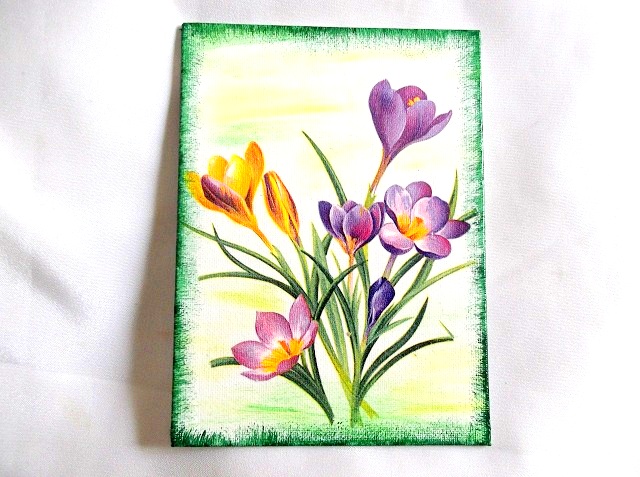 Tablou pe panza realizat cu tehnica servetelului si pictat cu vopsele acrilice